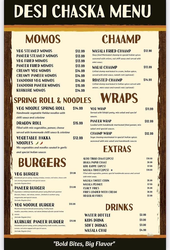 Desi Chaska is a mobile food truck offering bold Indian street food across New Zealand. From steaming hot momos and creamy chaamp to desi-style burgers and wraps, our menu is designed to bring authentic taste with a modern twist. Whether you’re craving a spicy snack or a hearty meal, Desi Chaska is your go-to stop!